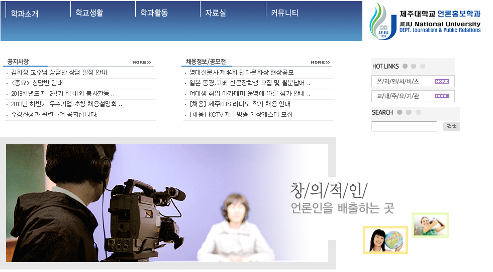 제주대학교 언론홍보학과 홈페이지 운영이 제대로 이루어지지 않고 있다. 제주대학교는 학교 자체 홈페이지 외에도 학과별로 홈페이지를 운영 중이다. 그러나 언론홍보학과 홈페이지의 경우, 2012학년도 이후 홈페이지 관리가 제대로 이루어지지 못하는 실정이다.