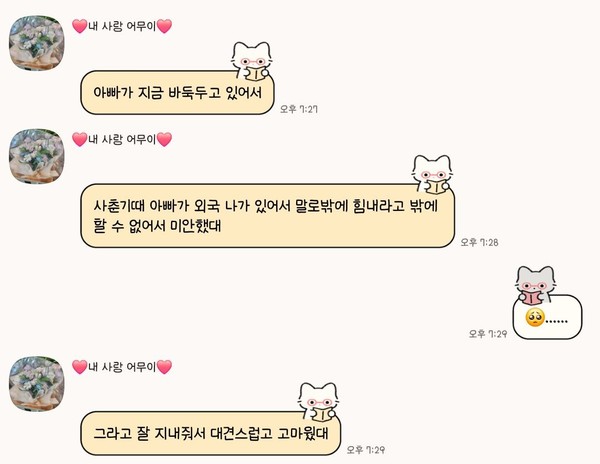 과제를 작성할 즈음에 내 사춘기 시절에 대해서 생각해 봤다. 나의 사춘기는 아빠께서 우즈베키스탄으로 몇 년 동안의 장기 출장 떠났을 때 왔었다. 5살 차이가 나던 오빠는 사춘기가 오면서 예민해지고, 엄마와 사이가 안 좋아졌다. 이 상황에 나도 자연스럽게 사춘기가 왔다. 사춘기 시절을 생각하면 나는 비교적 조용히 사춘기를 넘겼다. 아니, 사실은 엄마 혼자 사춘기 남매를 감당하는 게 힘들어 보여 참기만 했다. 일이 생기더라 덮어두고 모르는 척하는 게 옳다고 생각했다. 그리고 부모님께서는 이에 대해 잘 모르고 계셨을 거라고 생각했다.